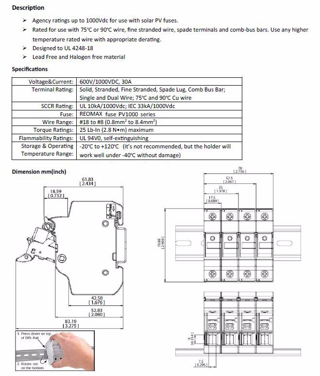 Portafusible Cilíndrico 10x38 32A 1000V DC